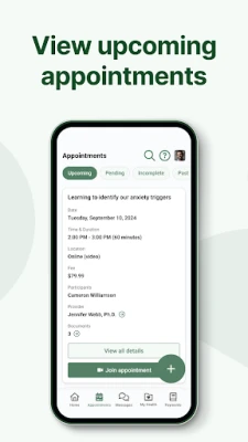 Virtual app to manage and book appointments, and make payments.