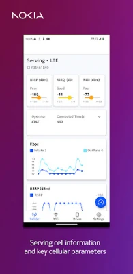 When connected to the Nokia Network Digital Twin server, the application alerts the user on poor device experience, shows historical view of hot spots / cold spots. Allows the user to run tests to troubleshoot device and / or network bottlenecks.