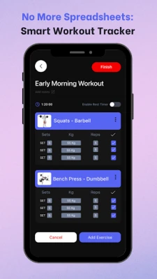 Your entire workout history is saved locally and on our secure database, so you’ll never lose your progress.