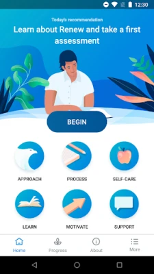 Renew also includes information about trauma reactions and helpful tips based on the latest research in trauma and posttraumatic stress, as well as motivational videos and inspiring quotes to help keep you focused on your recovery. Short check-in assessments help you track your progress, provide feedback, and stay motivated.