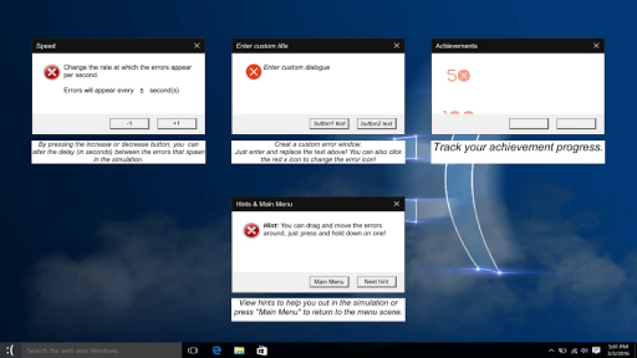 There are still many other easter eggs to discover and achievements to collect. Be cool and hunt for them yourself, or, be a loser and follow the guide online at http://malgow.net/Windows10Simulator