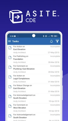 Asite CDE Mobile brings all your CDE documents to your mobile device so you can access them on-site. You get online and offline access both on phones and tablets.