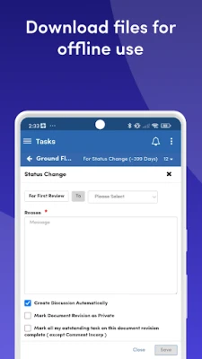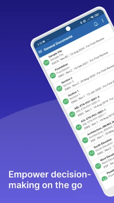 Key Features include: - Simplistic and easy-to-navigate user interface - Access to CDE module to comment, mark-up drawings, and change task statuses in just a couple of taps - View, create and comment on files in an offline environment - Full audit trail of all communications and changes