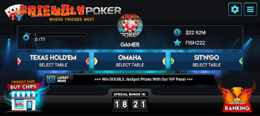 Battle your way through the ranks of Friendly Poker to reach the top and be champion of the world!