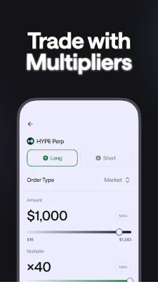 - Trade BTC, ETH, SOL, and more with multipliers, up to ×40