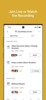 All sessions are recorded, archived, and available in the app (Owners Only sessions excluded).
