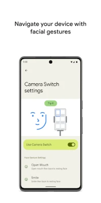 You can use Camera Switches to navigate your phone with facial gestures. Browse or select apps on your phone with the use of your phone’s front camera.