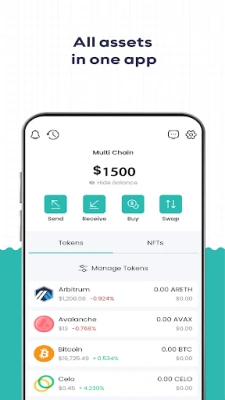 • Store, Send and Receive: you can store, send and receive Ethereum (ETH), Bitcoin (BTC), Avalanche (AVAX), Celo (CELO), Smart Chain (BNB), Arbitrum (ARETH), Fantom (FTM), Polygon (MATIC), Huobi ECO (HT), Gnosis (xDAI), Cronos (CRO), Optimistic (OETH), and other altcoins, with zero fees, your assets will be in a secure and private wallet. In addition, your private keys will be under your control because TREASURE WALLET is a self-custody crypto wallet, and only you will have an access to your funds.