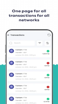 • Transactions history: Know all your transactions on all blockchains that took place on the TREASURE WALLET or any other wallet. Moreover, you can sort your process by date, amount, status and type.